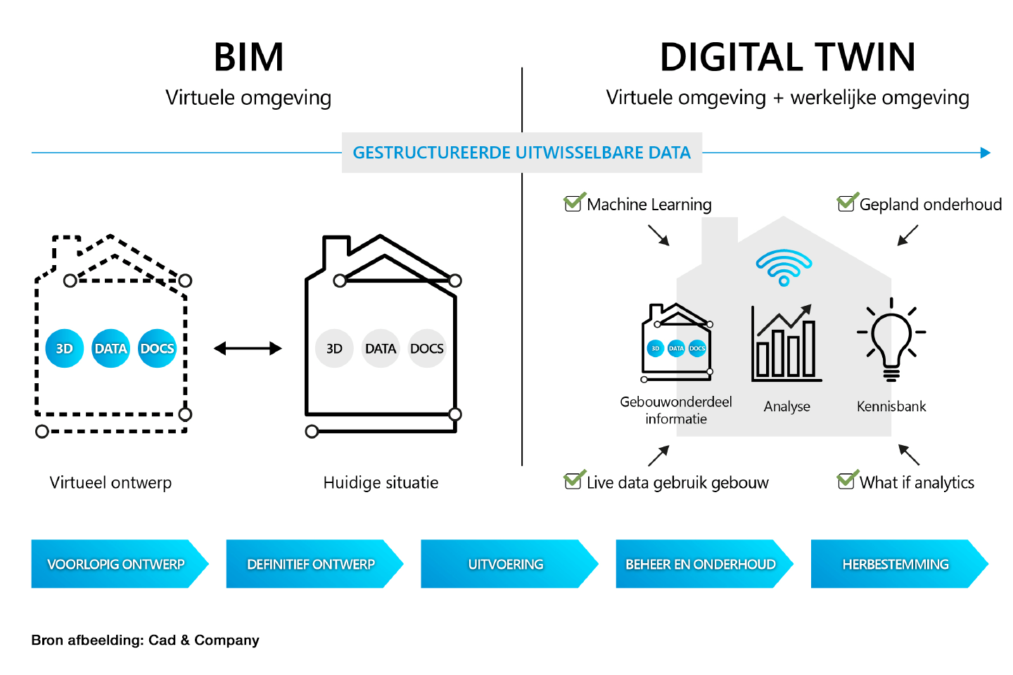 Met de ongelofelijke snelle ontwikkeling van software en hardware de laatste jaren komen de werelden van ‘bits & atoms’, ofwel de fysieke en de virtuele wereld, steeds dichter bij elkaar. Na de introductie van verschillende mixed-reality-oplossingen, is de ‘digital twin’ de nieuwe stip op de horizon voor de bouwwereld. Het concept ‘digital twin’ is ontwikkeld aan het begin van de 21ste eeuw en wordt steeds belangrijker. Het reikt verder dan Building Information Modeling (BIM). Een digital twin wordt ook wel een ‘virtuele tweeling’ of een ‘virtuele kopie’ genoemd.